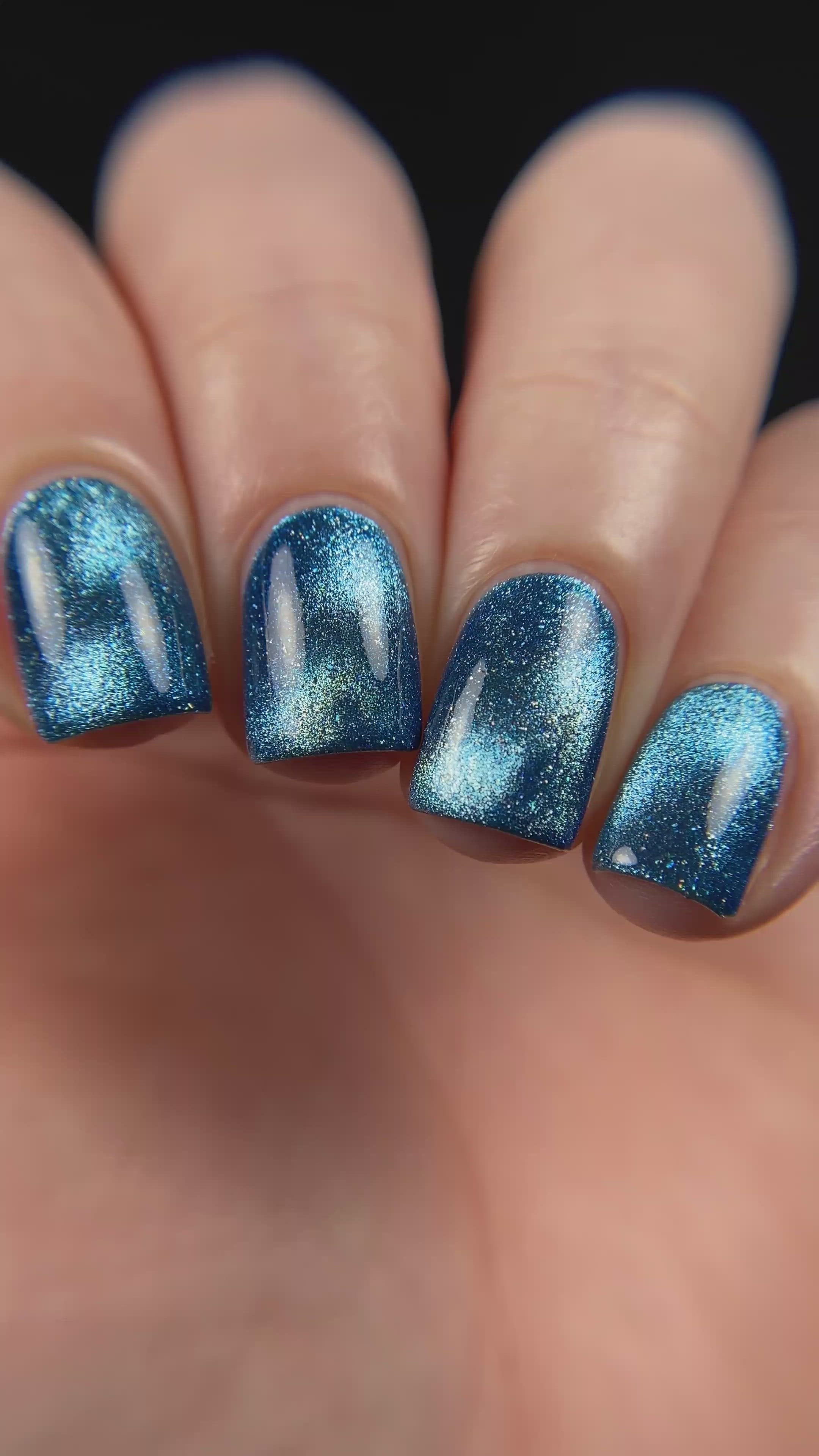 Description: Uranus is a light blue magnetic nail polish with tons of silvery shimmer and micro holographic pigment.