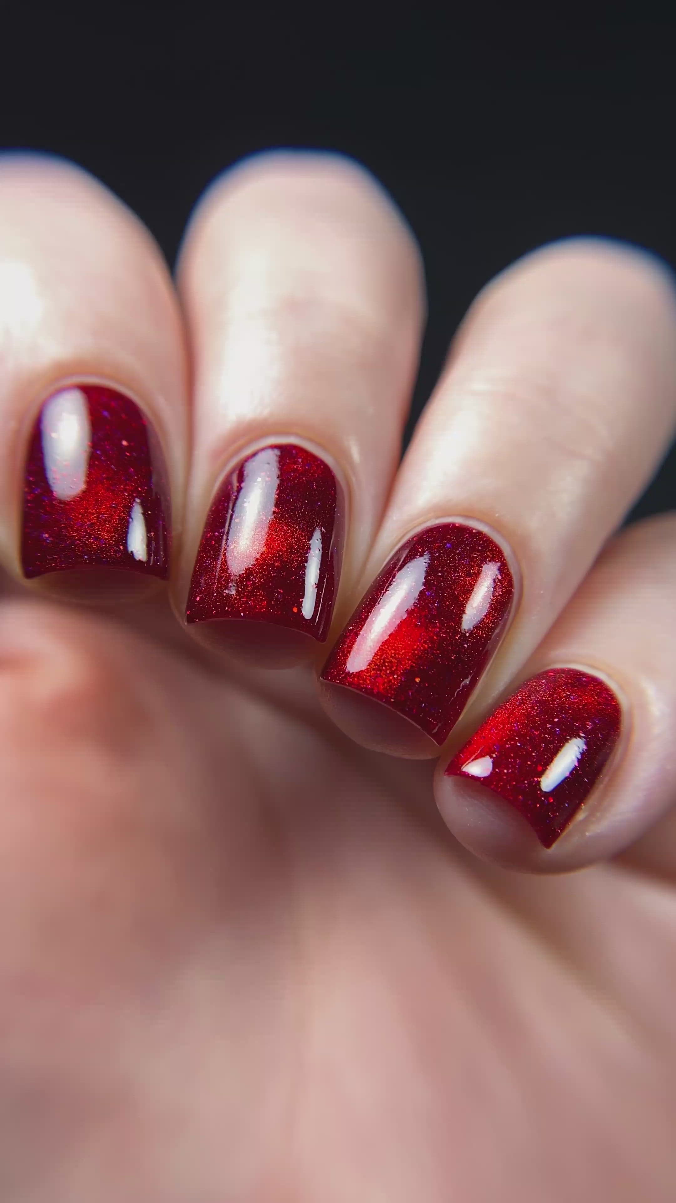 Description: Mars is a beautiful deep red magnetic nail polish blended with a strong copper magnetic shimmer, holographic pigment and a hint of our ultra sparkly gold holographic glitter.
